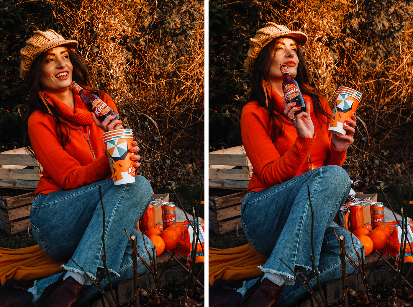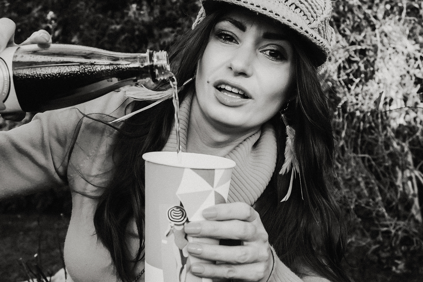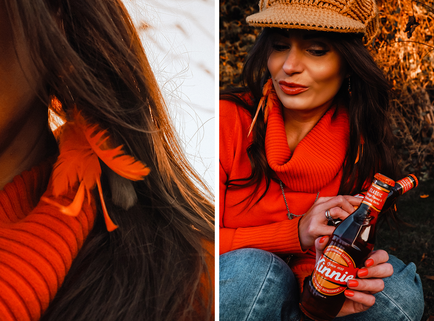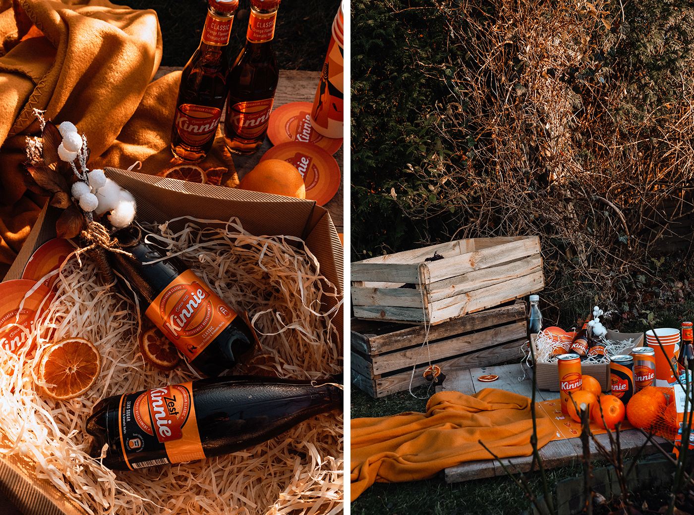Co do kompozycji samego napoju to swój smak Kinnie zawdzięcza słodko-gorzkim pomarańczom chinotto, uprawianym wyłącznie w rejonie Morza Śródziemnego. Ziołową nutę nadaje mieszanka kilkunastu aromatycznych ziół i przypraw, trzymana w tajemnicy przez firmę Simond Farsons Cis. To właśnie ona w 1952 roku stworzyła na Malcie alternatywę dla napojów typu „cola”. Trudno ten wyrazisty smak porównać z jakimkolwiek innym. Kinnie jest także świetną bazą pod różne drinki zarówno na bazie alkoholu jak i bez. Pod zdjęciami znajdziecie kilka inspirujących opcji podania właśnie na ciepło i z kawą! Przyda się gdy zmarzniecie. Ja przy tej sesji zmarzłam strasznieeee i skostniały mi dłonie stopy jeszcze na długo po spakowaniu wszystkich akcesoriów z powrotem do auta. Mam nadzieję, że zdjęcia przypadną Wam do gustu i warto było tak posiedzieć bez płaszcza i poudawać, że ciepło:)